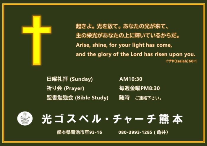 7月30日土曜日 「Awake Japan Kumamoto」を予定しています。詳細は随時お伝えします。お祈り感謝です。 お知らせ(News) よかったらシェアしてね! URLをコピーしました! URLをコピーしました! 関連記事 光ゴスペルチャーチ熊本2周年 2024-03-12 Awake Japan Kumamoto 第2回 2022-10-04 夏のリバイバルセミナー第2弾 2022-08-10 夏のリバイバルセミナー開催 2022-07-26 6月教会お知らせ/Announcement of June 2022-05-30 イースターフェスタ・パレード~ウクライナ支援チャリティー 2022-05-21 5月4日時間変更/Training season Time change 2022-05-01 ワーシップフェスタ IN 静岡 2022-04-23