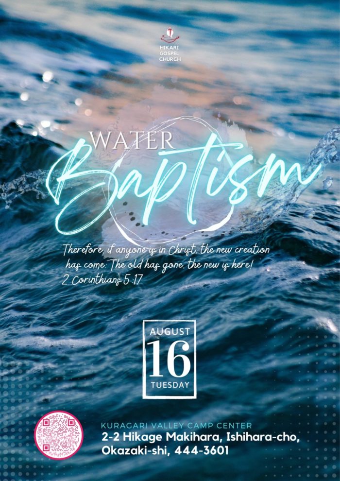 Commission to go! 愛知県で洗礼式が行われました。キリストの弟子としての信仰告白をされました。ハレルヤ!どうぞ、お祈りに覚えて下さい。聖なるイエス様の弟子として、この世のなかで光として輝くように。主に栄光あれ! 宣教 よかったらシェアしてね! URLをコピーしました! URLをコピーしました! 関連記事 夏のリバイバルセミナー第2弾 修了 2022-08-29 ジョナサン・デイビッド牧師の著書を特別無料提供! 2022-06-18 Bilingual Worship バイリンガル賛美 2022-05-28 Revival Seminar, Training/リバイバルセミナー 2022-04-23 トレーニングセミナー 2022-04-23 聖書通読日本語と英語 Bible Reading Plan 2022-04-12 イースターフェスタ・パレード開催! 2022-04-09 AWAKE JAPAN TOYOHASHI 2021-10-14